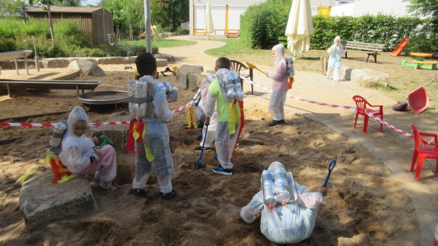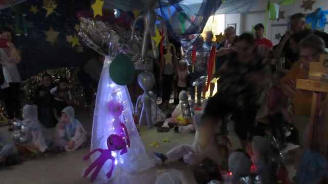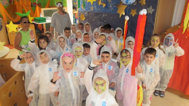 Das Abschlussfest der Vorschulkinder stand unter dem Motto „Auf der Suche nach den Außerirdischen“. In der Reisebeschreibung konnte man nur erahnen, was das Erzieherteam geplant hatte: